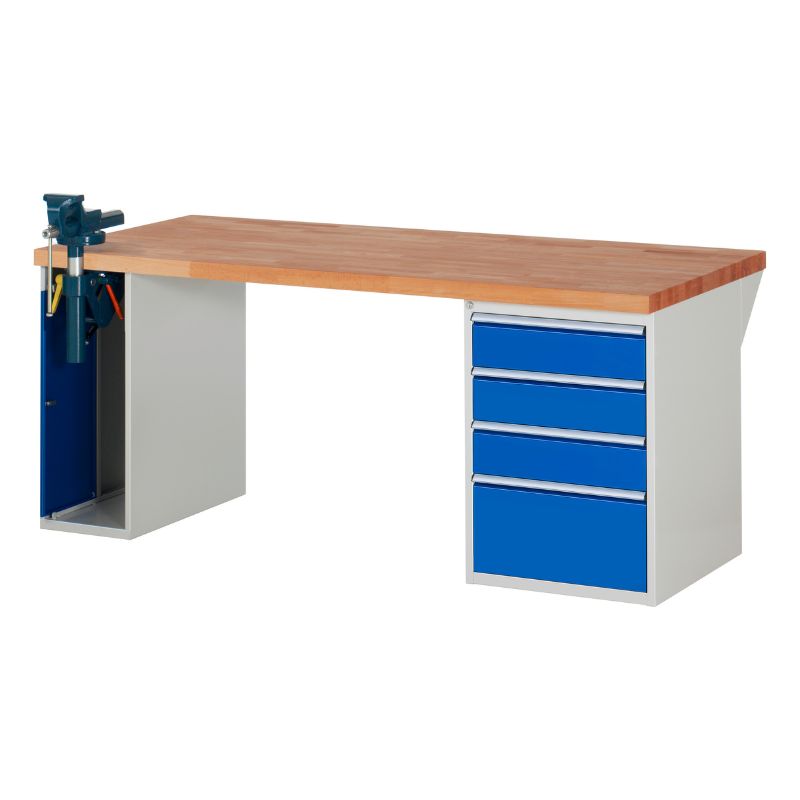 Bänkskiva i massiv bok, 4 lådor och skruvstädsfack